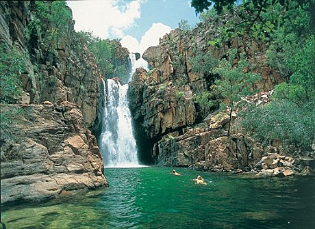 Continue to the Bark Hut Inn for a refreshment stop before entering Kakadu. Travel along the old Jim Jim Road visiting White Lily Billabong before arriving at Maguk (Barramundi Gorge). Here we take a scenic 1km walk along the edge of Barramundi Creek before arriving at the base of Barramundi Falls. Here you have the opportunity to swim or snorkel in the large plunge pool below and discover the array of aquatic life that is present.