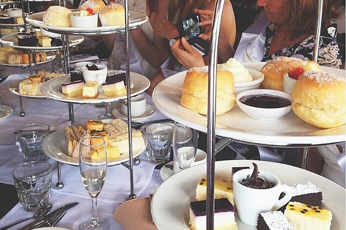 - River cruise, 3-tier high tea stand (1 stand per 2 people), beverages as described above, live entertainment