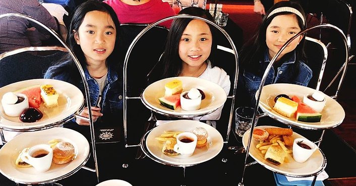 - Teens (13-17 years) includes High Tea stand (as above) + soft-drink & juice Child (4-12 years) includes 2-tier kids stand + soft-drink & juice Infants (3 years and under) free of charge (no meal provided). Must be included in booking. If you would like your infant to recieve a kids meal as outlined below, please book them as a child. Kids menu (4-12 years): Tier 1: Chicken slider, cheddar cheese (G) Pulled beef tartlet (G) Chicken nugget (G) Crispy fries with tomato sauce (G) Tier 2: Chocolate mousse (G) Watermelon (G) Chocolate fondant (G) Fresh Seasonal Fruit Sample menu only, subject to change Vegetarian & Vegan platters available. Must be pre-booked at time of reservation
